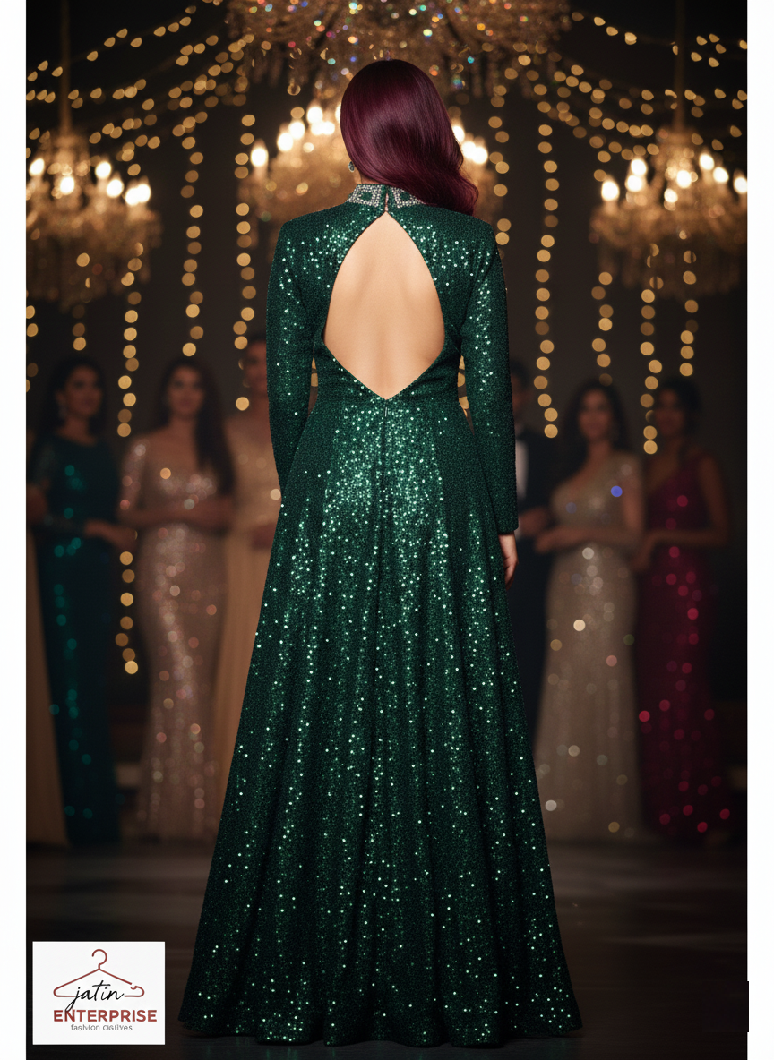 Jatin Enterprise Emerald Dream Sequin Gown – Dazzling Deep V Back & High Slit.